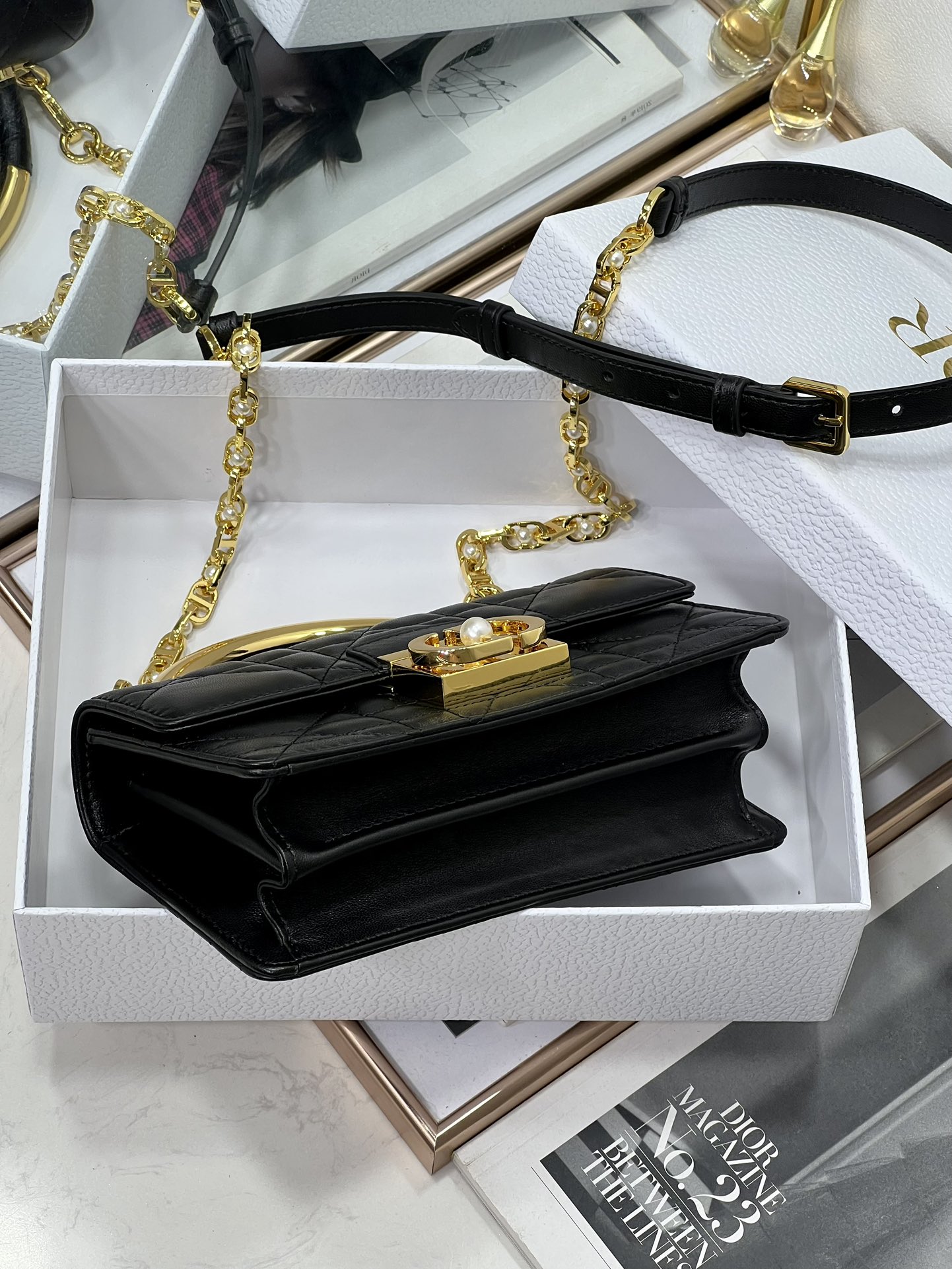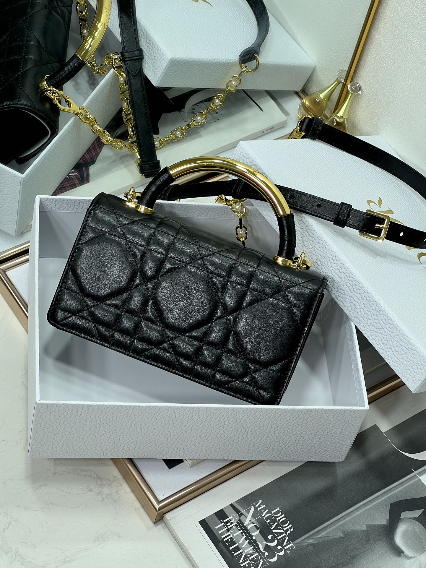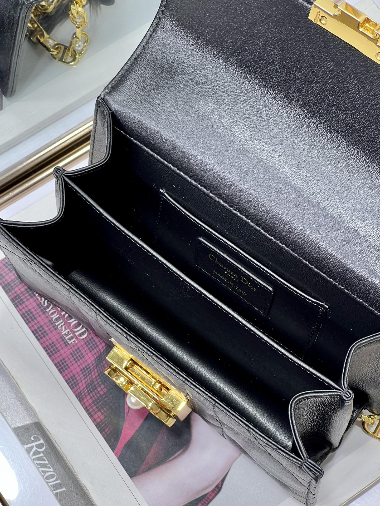 33% OFF5044-Dior Black Quilted Leather Bag | Iconic Elegance with a Pearl-Touched Edge