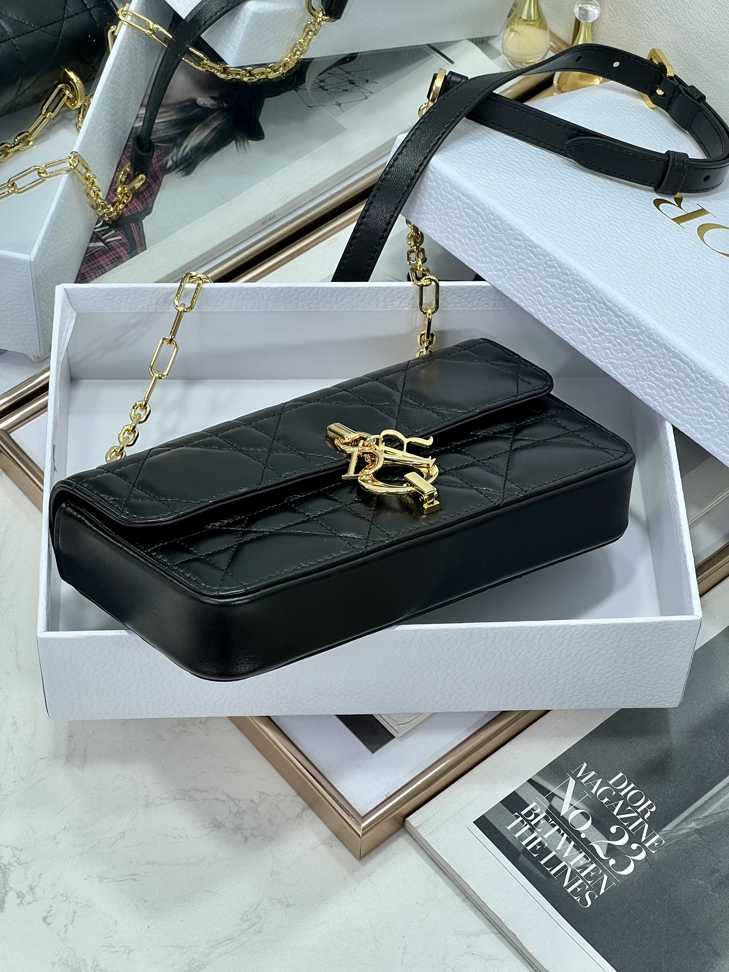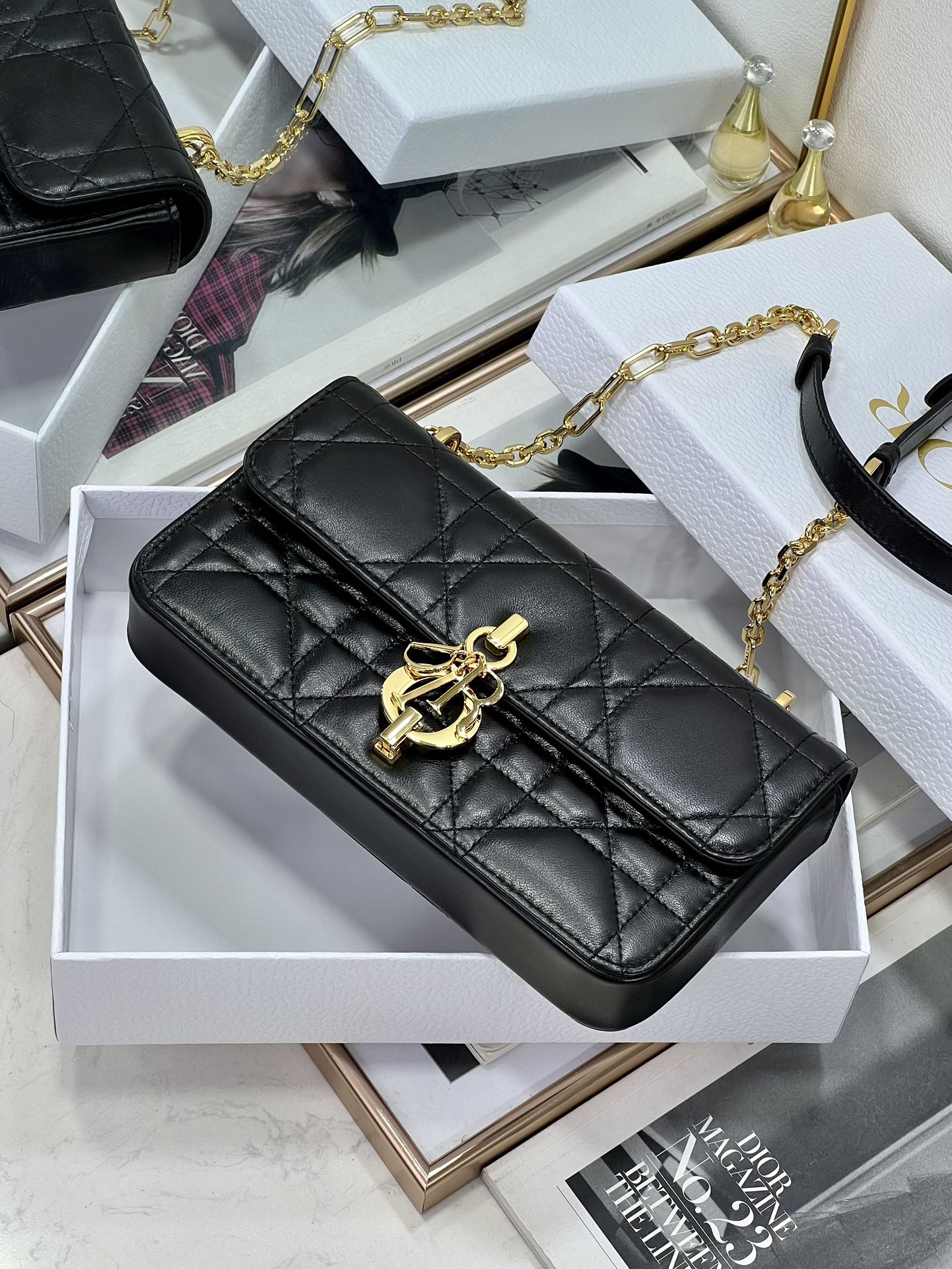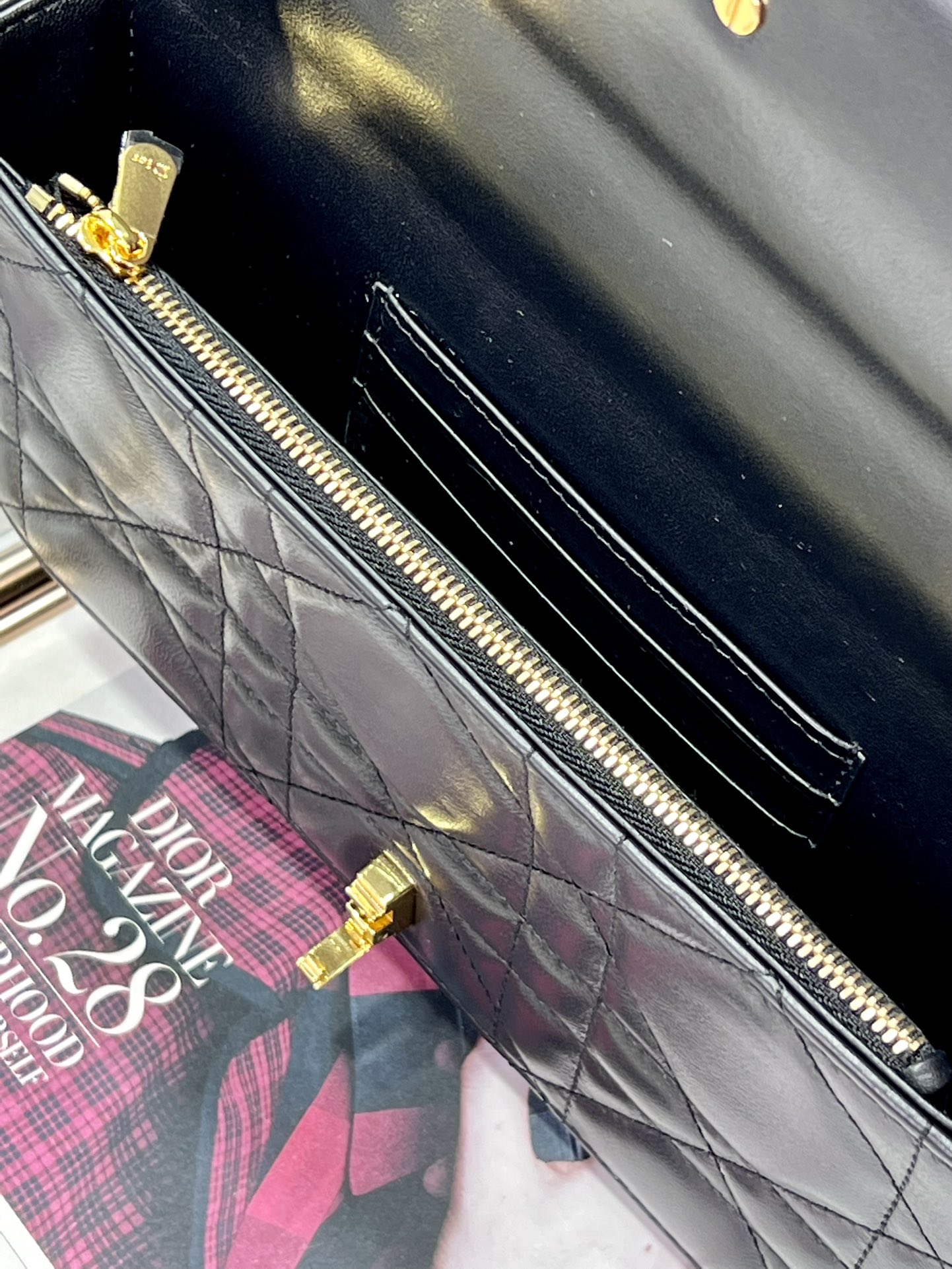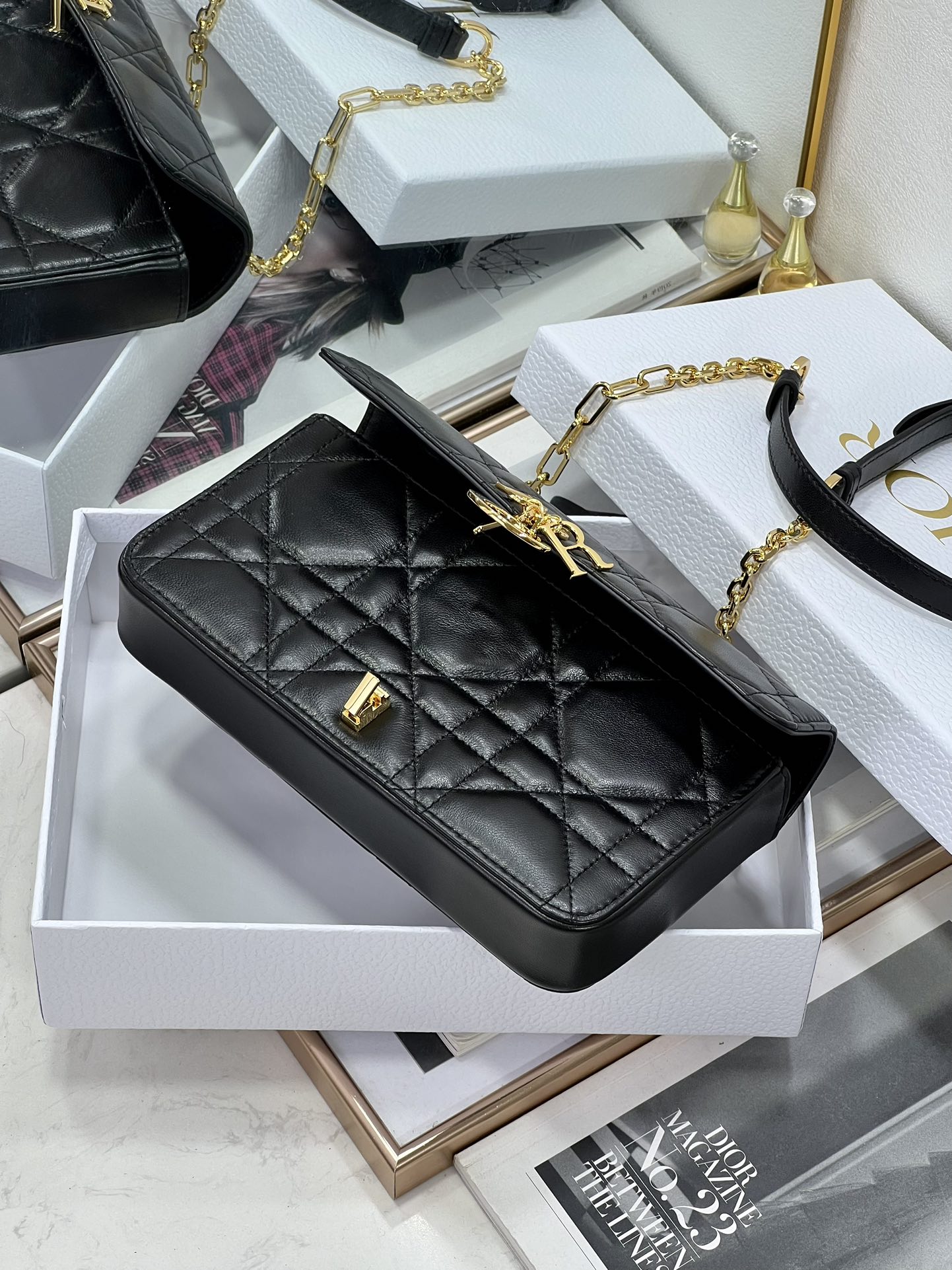 33% OFF5044-Dior Black Quilted Leather Bag | Iconic Elegance with a Pearl-Touched Edge