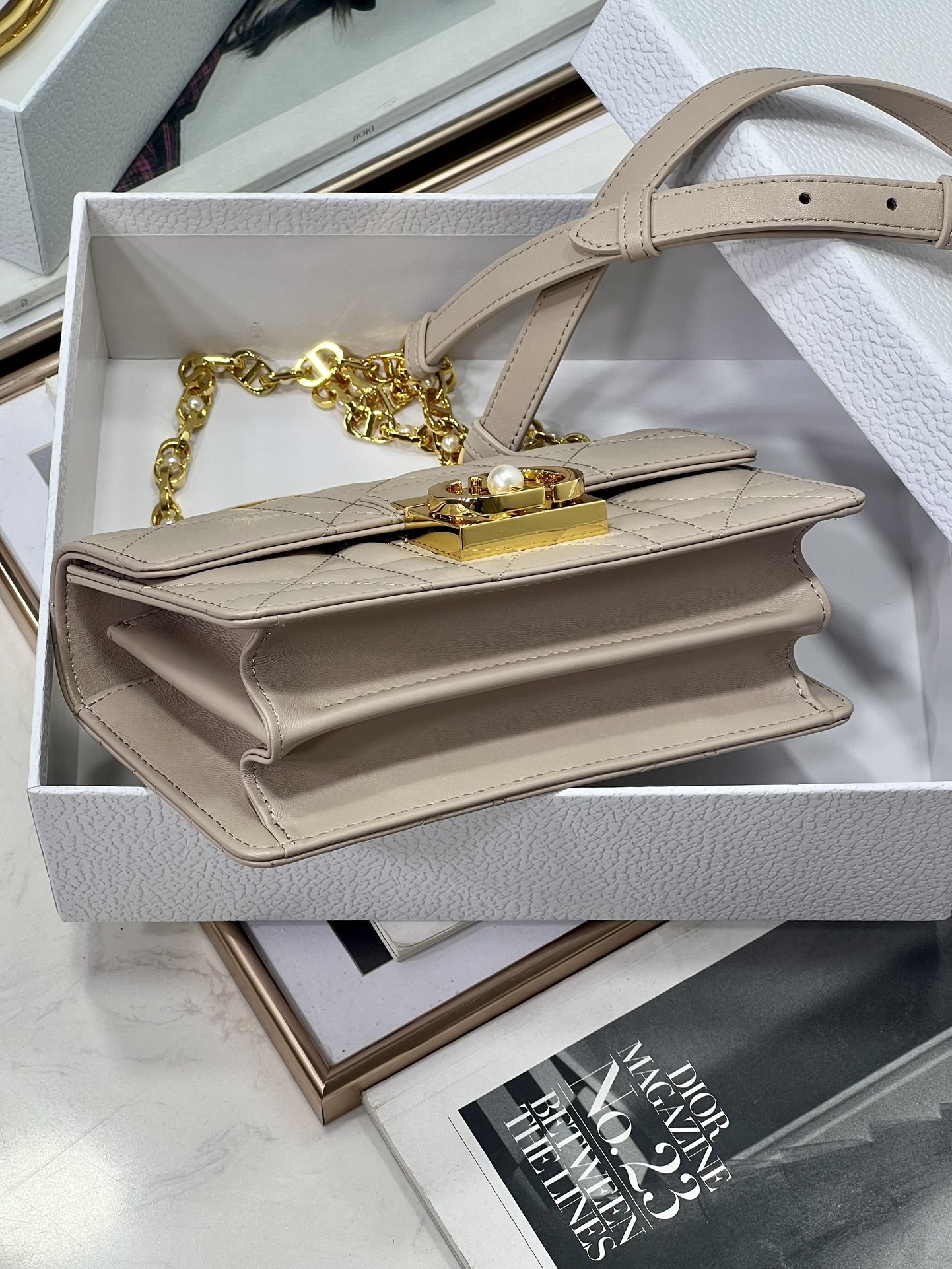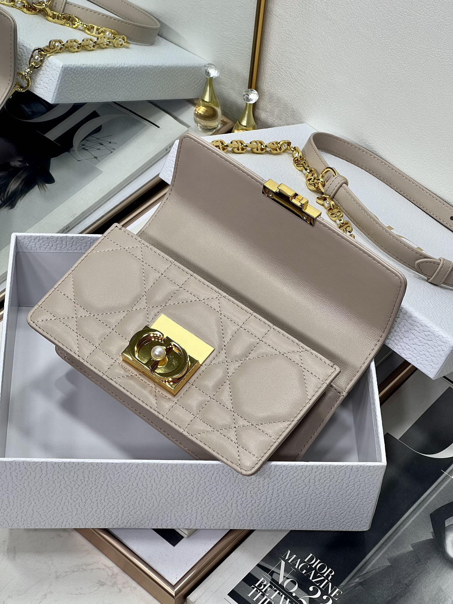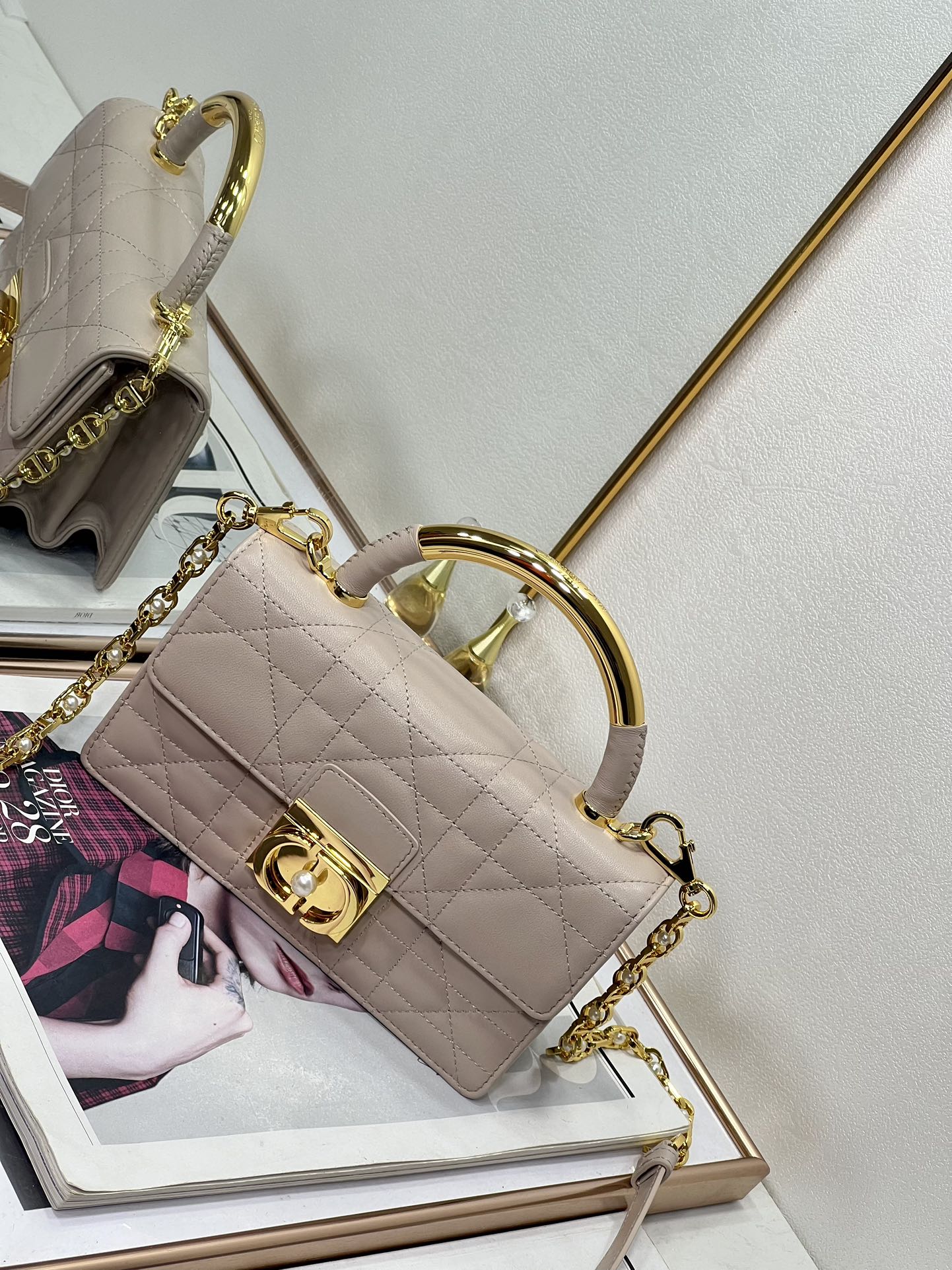 33% OFF5043-Dior Beige Quilted Leather Top Handle Bag | Soft Elegance, Timeless Sophistication