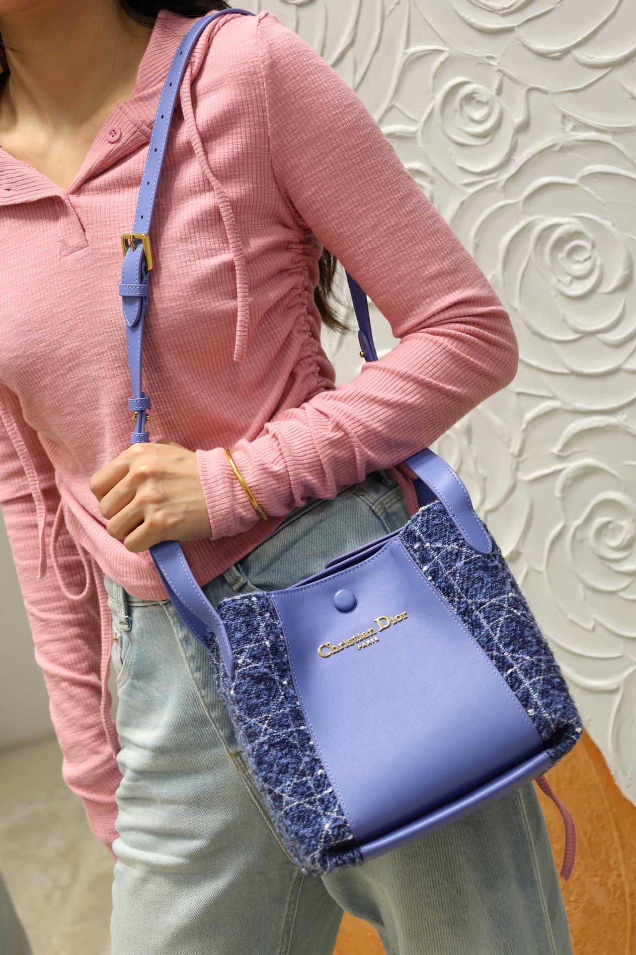 33% OFF5049-Dior Lilac & Navy Tweed Shoulder Bag | A Fresh Fusion of Elegance and Style